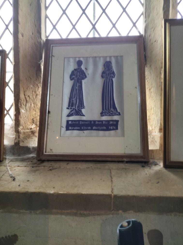 The second image shows the framed picture in the vestry of the complete brass of Robert Parnell and his wife. There is another one showing all his children.