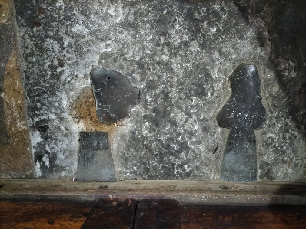 Here is part of the old brass in St Andrew’s Church under the organ. It had been covered by a heavy wooden chest which has just been moved.