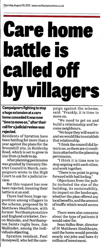 Following a very close decision (7to 5) to grant consent, a group of villagers decided to seek a judicial review of the decision. Christopher Cox advised the group on a no-win no-fee basis, but the application was thrown out on the grounds that there was not a case to answer. The planning policy, which the group of villagers had considered to be violated, was judged to have been correctly applied. Although the group did not agree with this, it was felt that there was no chance of success in trying to pursue the matter further