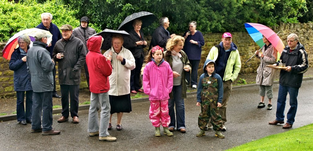 Jean Sutch, Tony Woods, Terry Greenwood, Roger Frisby, ? (behind), Sue Laste, Enid Jarvis, Pat Greenwood, Sarah Green, Karen Green, Stirling Green, Andrew Green