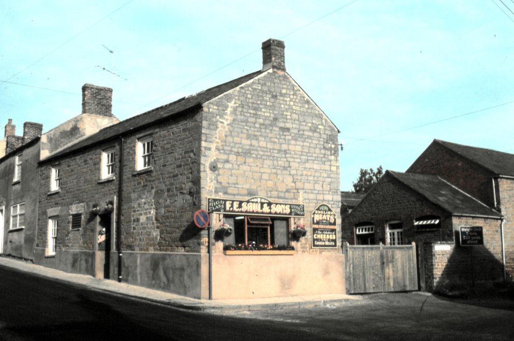 Dick Thorley at the entrance to his butcher's shop in Brixworth Road (now part of the Old Bakery, the door has long since been bricked up)