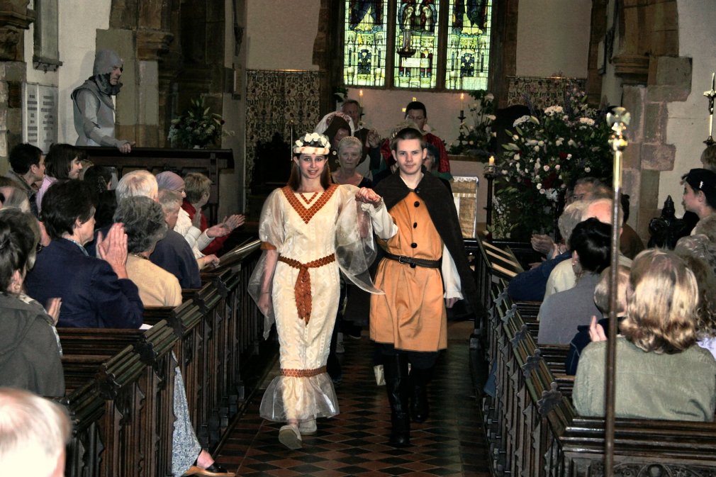 Front row: Enid Jarvis (Parishioner), Louise Fletcher (Ralph, Builder's apprentice), Millie Tee (Tourist), Anna Smith (William, Builder's apprentice), Gemma Tee (Tourist), Amy Hewitt (Lady in Waiting), Joan Shaw (Goody Chambers), Adam Snedker (Tourist), Diana Wright (Lady in Waiting).