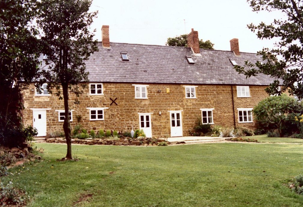 Mulberry Cottage after its conversion back to a single house. It was built as a farmhouse in the late 1600's, with the left part of the present house being an attached barn. It is believed that, at the time of the enclosure award of 1766, it was in the ownership of William Hawkins (surgeon) who was allotted 89.5 acres off to the south-east at the end of Yew Tree Lane. The land was thus not attached to the farmhouse. The house may have been let at that time, or soon after, to John Knighton, and the farm would have been let out too. In 1784, there is a reference to this farmhouse within a mortgage deed (£2000 loan to Hawkins) and it is stated that the house is then occupied as three tenements with the Homestead by Edward Farndon and his sub-tenants. It appears, therefore, that the conversion to three cottages occurred at a much earlier time and was not specifically done by Spratton House to create living accommodation for its employees. William and Rose Johnson lived in the left-hand of the three cottages in the 1940s and early 1950s. From the early 1950s, Mr Hart, gardener at Spratton House lived in the left hand cottage, Mr Herbert William Bartlett, the groom, in the middle one (until his death in 1963), and Mrs Fishlock, seamstress, in the right hand one.