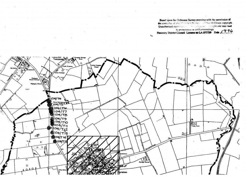 The map shows the parish boundary and the TPOs in place in 1996 and the source is Daventry District Council.