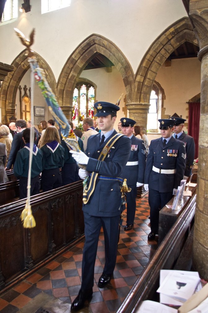 Standard parties from Number II (Army Cooperation) Squadron from RAF Lossiemouth, Standard bearer Flt Lt Simon Bowman with Warrant Officer Duncan Olsen and party