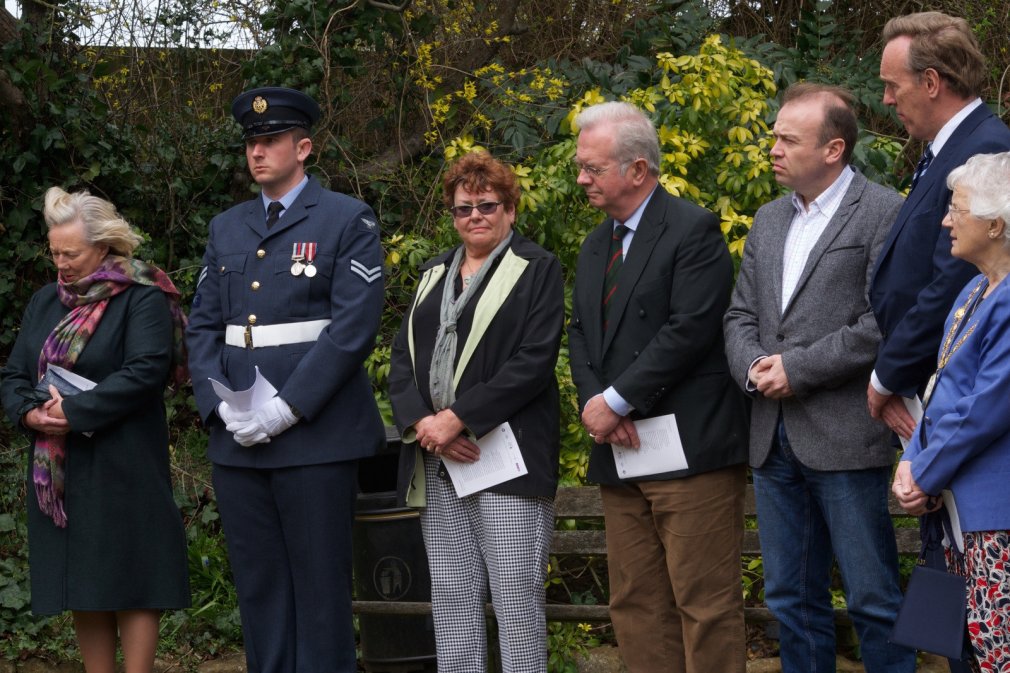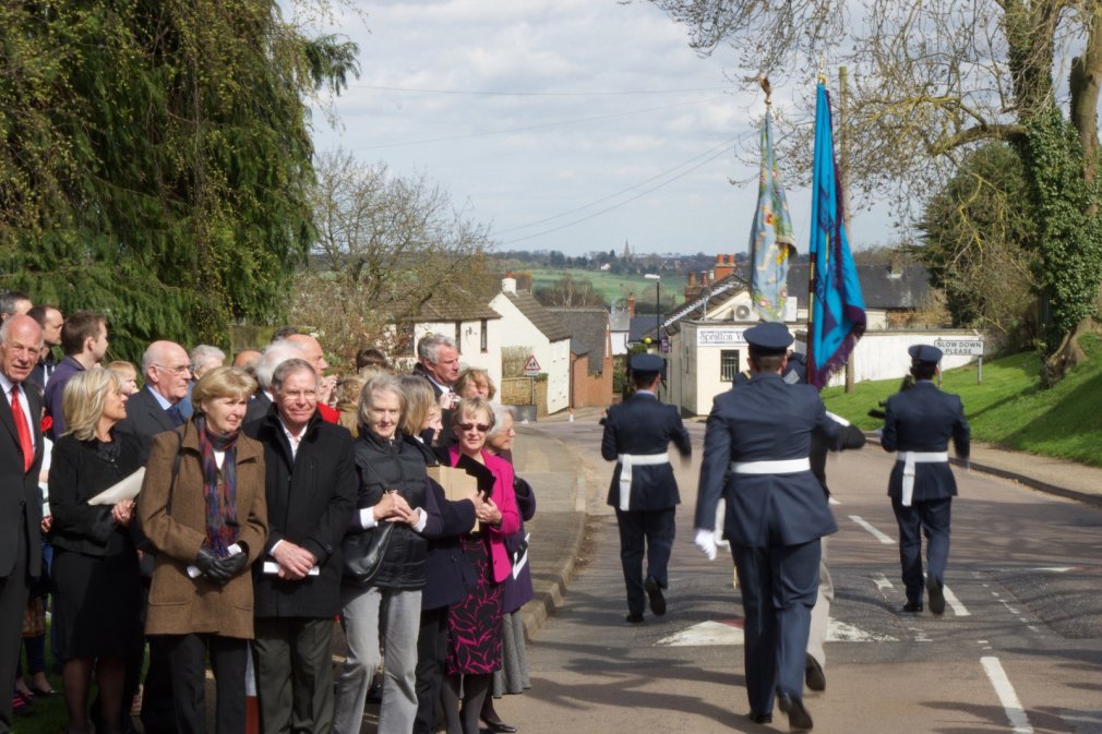 Mrs Mary Laing, wife of the Lord Lieutenant of Northamptonshire, one of the Standard bearers, Corporal Adam Sanderson who read the VC citation, Councillor Judy Shephard of Northamptonshire County Council, Cllr John Shephard of Daventry District Council, Chris Heaton-Harris MP for Daventry, Chris Millar Leader of Daventry District Council, Cllr Catherine Lomax Chairman of Daventry District Council