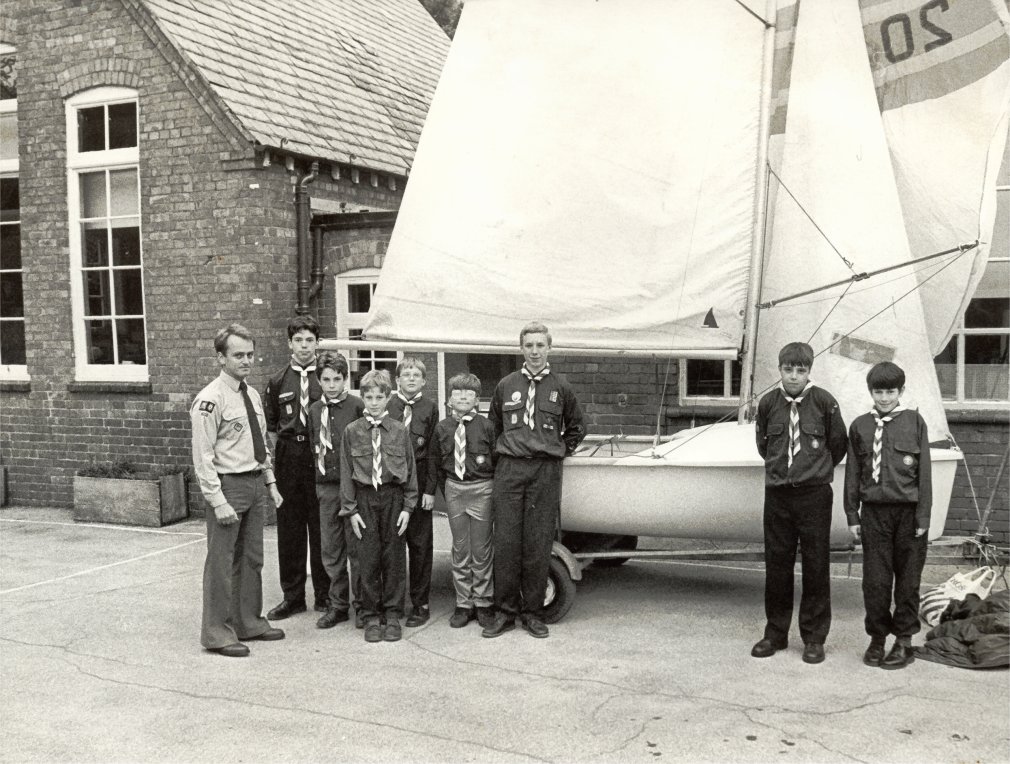 Back row: John Leach, Graham Smith Scout leader, Peter Boutle, Alan Giles, Tony Hart Assistant Scout leader, ?, Michael Hart, Tim Jones, Darren Sibley Assistant Scout leader, Matthew Walters, Ian Brett Assistant Scout leader