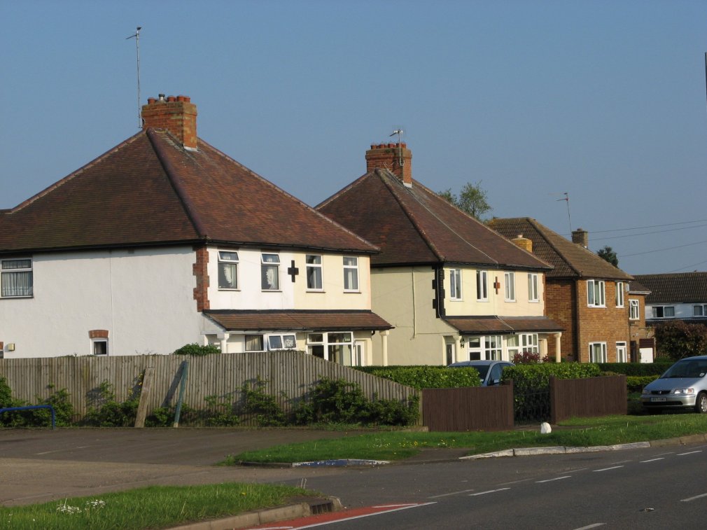 This appears to be the corner of Manor Road and School Road. The grass triangle, fenced off at the time, is a key to locating this picture. There was a dwelling shown on the 1883 map on the left in this picture, where today is found Bobby Abbott's small grass area with dwarf posts. It is known that there were houses (on the right) in what was then Dring's Lane, although they have disappeared by the time of the 1883 map. Beyond them the shape of the walling indicates the still existing buttresses. The view through to the Brixworth area may have been free of buildings or this may be artistic licence - the school would have been visually tucked behind the dwelling on the left and, of course, the village hall (which now sits in this location) was not built.