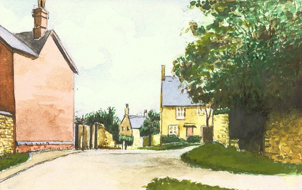 The Green, Yew Tree Lane - from a watercolour by Bob Wykes