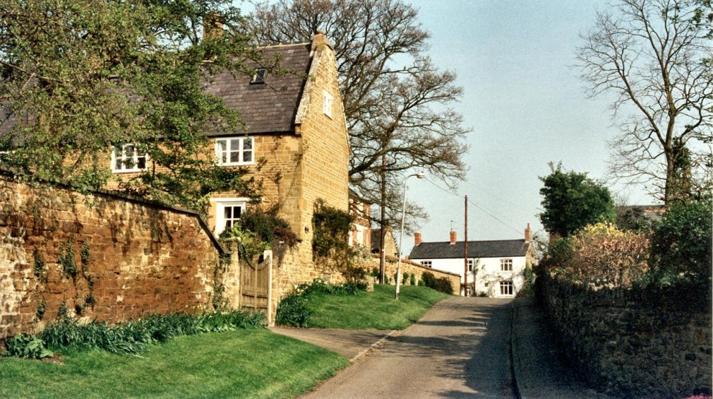 The three houses on the right were demolished to allow buses to take the turn into Church Road. The house behind the lacemaker remains today, it is built of cob, date indeterminate. Those to the left have also been demolished.