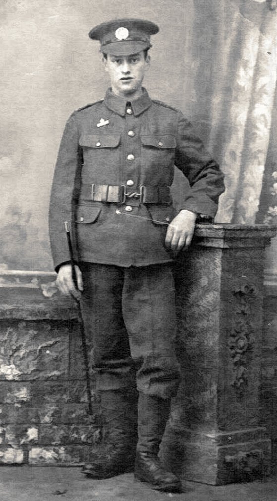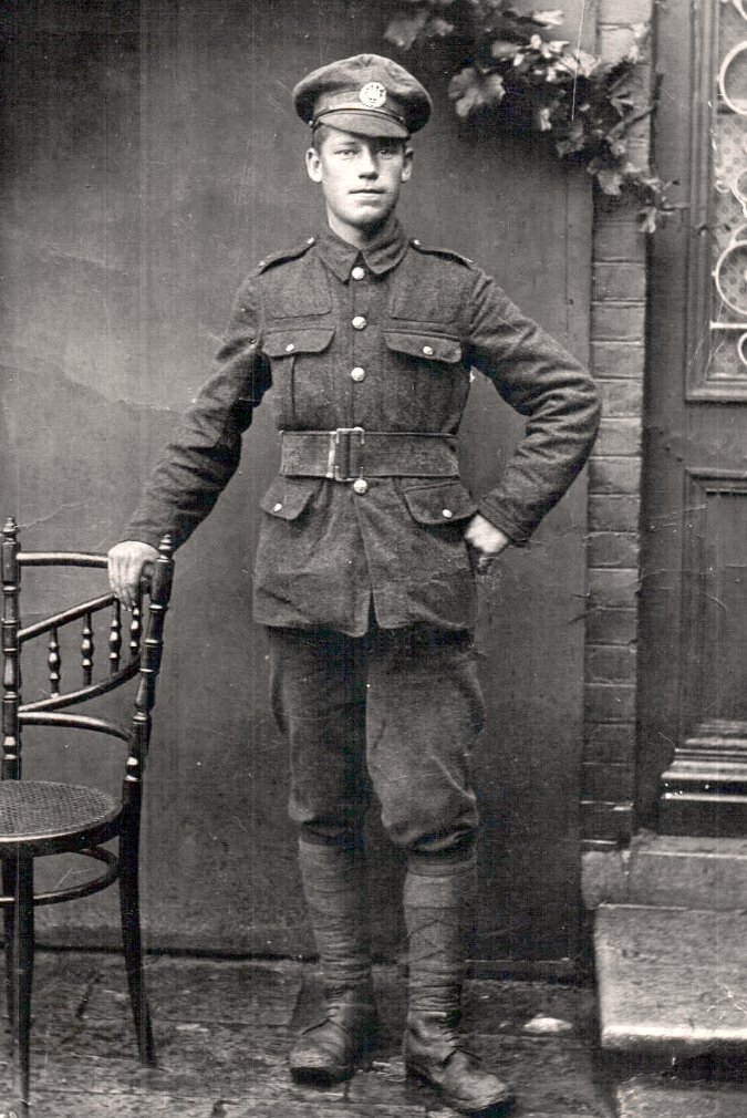 He volunteered in November 1915 under Lord Derby’s Scheme and was drafted to the Western Front in 1916 aged 19. He took part in several engagements, including those in the Arras, Bullecourt and the Somme sectors, and was wounded in March 1918. Later he was sent to Italy, and served on the Piave River and Asiago Plateaux. He returned home and was demobilised in March 1919. He was awarded the Victory Medal and the British War Medal.