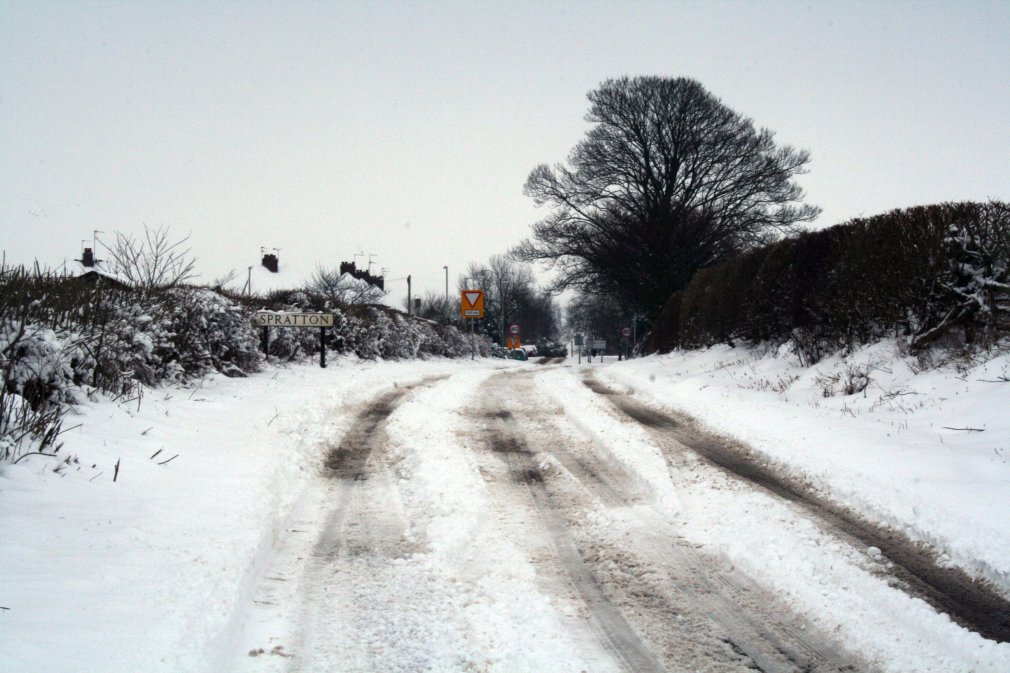 Snow in Spratton. Holdenby Road