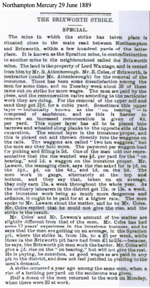 At some time between the wars, this site, on the north side of the Spratton-Brixworth Road Map reference SP 733707) was developed as a brickworks. An updraught kiln was almost completed but never used.